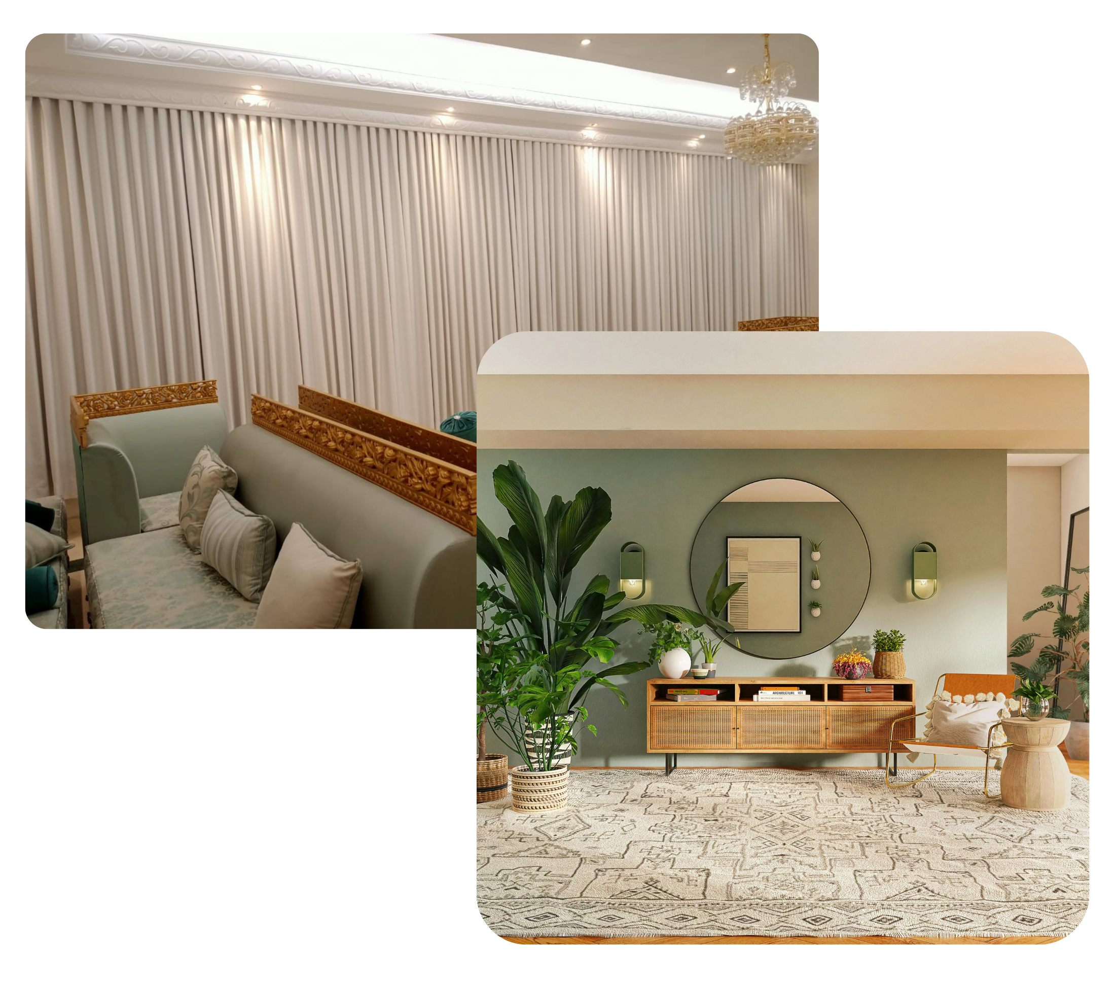 Simply reach out to us with your requirement—whether it’s curtains, furniture, carpets, or a full interior design solution.